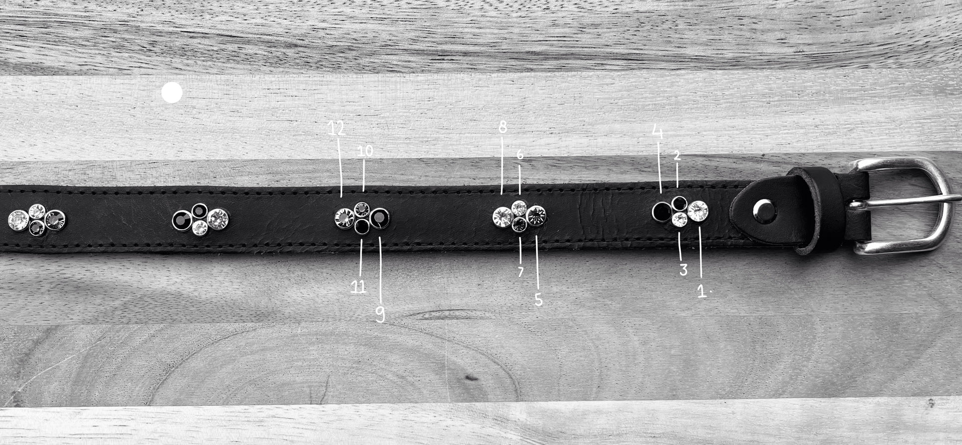 Wil je graag een ander ontwerp qua steentjes op je riem of heb je een kleinere maat nodig? Stuur mij een berichtje of mail!