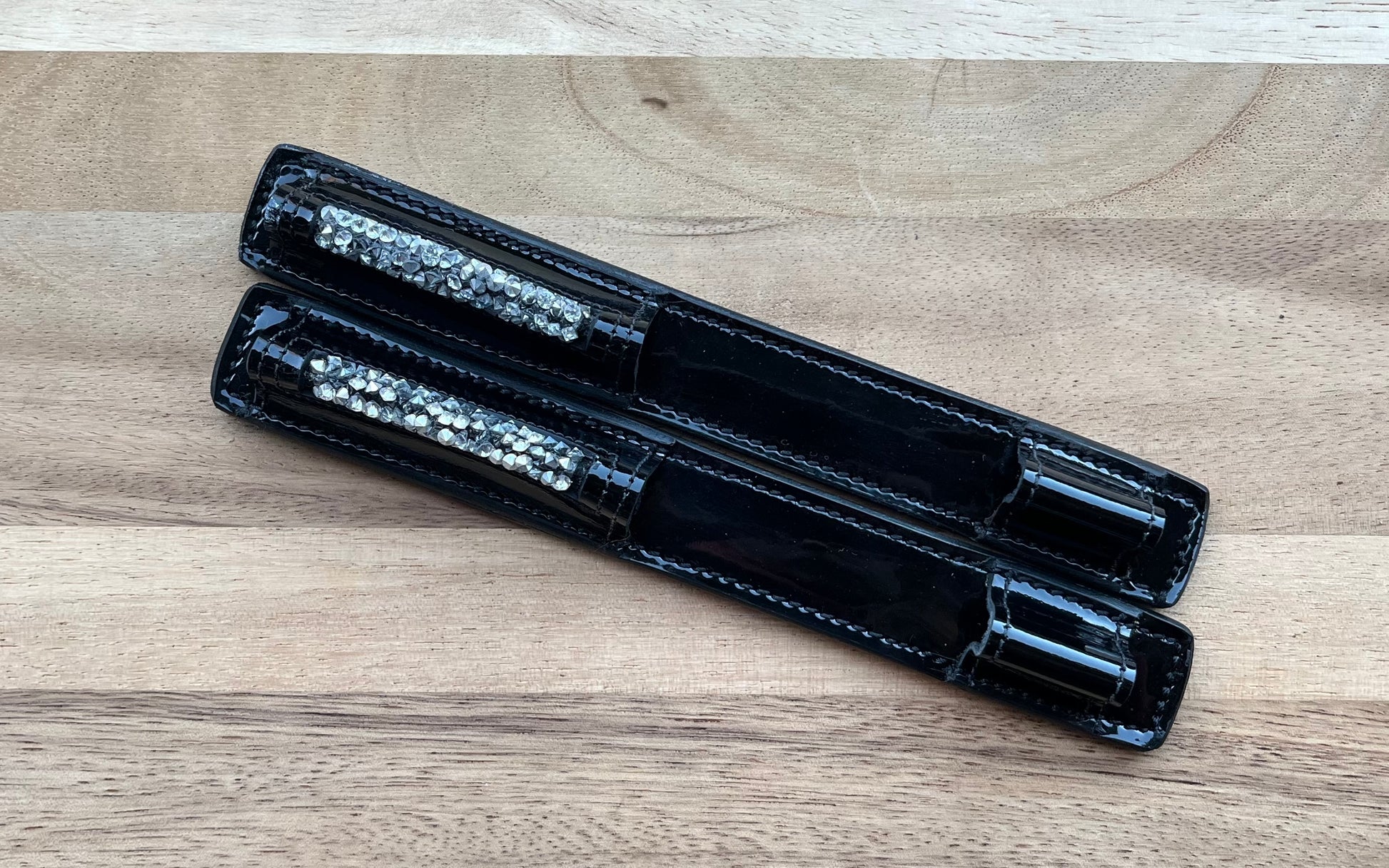 Onze sporenbeschermers voorkomen slijtage en krassen op je laarzen door sporen. De sporenbeschermers zijn gemaakt van leer, zijn 19 cm lang en 2,5 cm breed. Dankzij de strass steentjes hebben de sporenbeschermers een opvallende uitstraling.