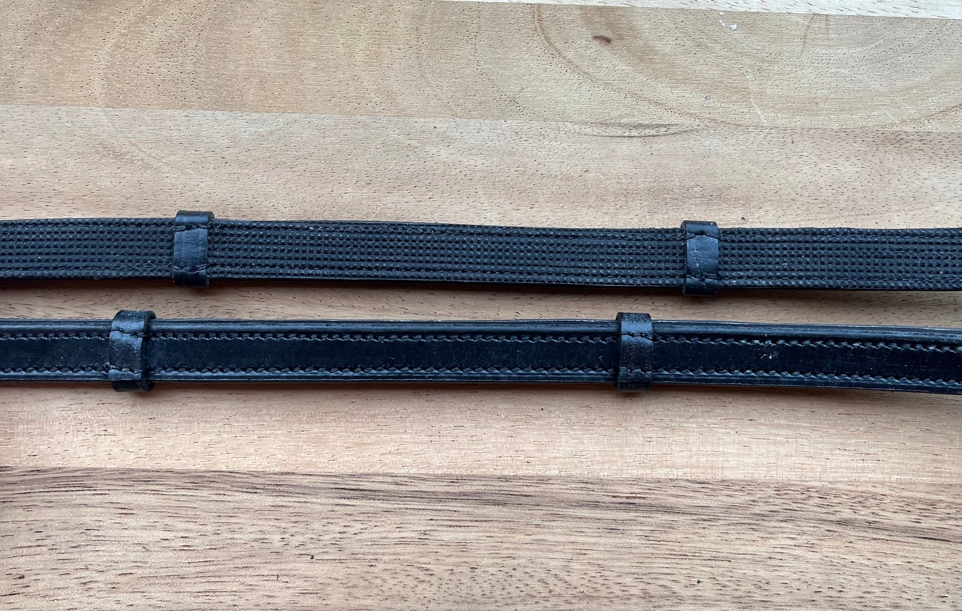 Lederen teugels met leren stopjes.
