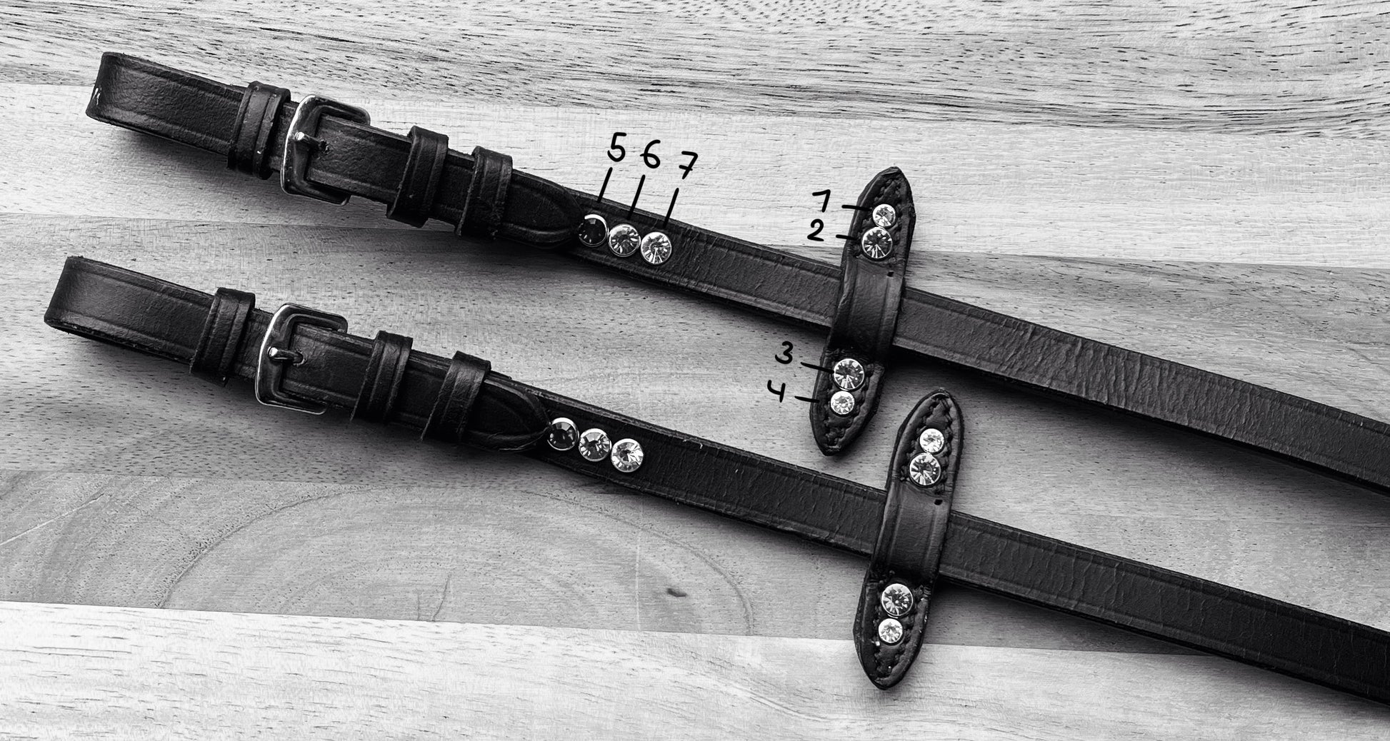- Let op! Op de rondgenaaide teugels is het alleen mogelijk om steentjes te laten plaatsen op de martingaalstops.