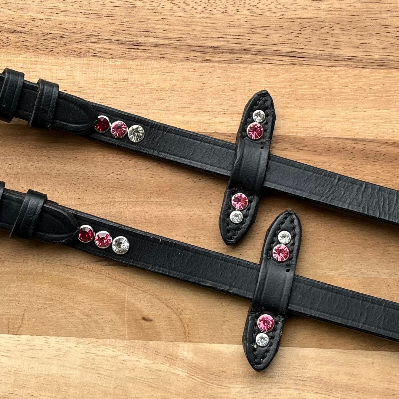 - Het is mogelijk om steentjes op de teugels te laten plaatsen, maar ze zijn ook zonder steentjes verkrijgbaar.